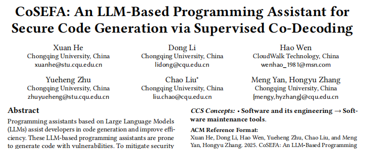 近日,云從科技與重慶大學(xué)大數(shù)據(jù)與軟件學(xué)院聯(lián)合研發(fā)的編程智能體——CoSEFA(Code SEcurity and Fix Agent)被軟件工程領(lǐng)域頂尖會(huì)議ACM SIGSOFT軟件工程基礎(chǔ)國(guó)際會(huì)議(FSE 2025)正式錄用。